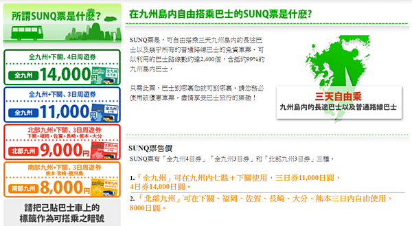 高千穗巴士選擇,都需使用全九州sunq pass與南九州sunqpass