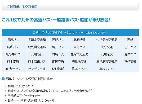 下圖是SUNQPASS可利用的公司(長崎巴士網站截圖)